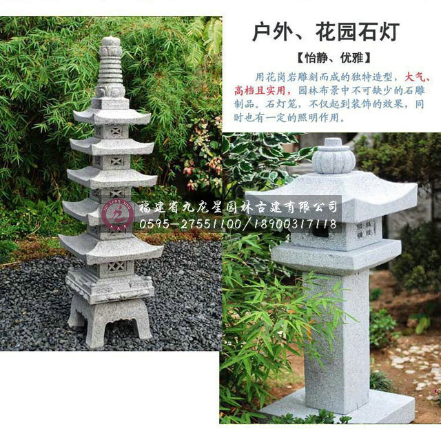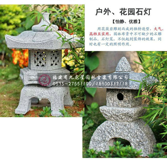 石燈籠最早雛形是中國國供佛時點的燈,它表明“立式光明”。隨著佛教在欽明天皇十三年(552年)傳入日本以后,石燈籠的技術也傳入日本。之后,在日本得到大量應用,并在世界各國廣為流傳,致使許多人誤認為石燈籠是日本獨有的園林小品。當時由于茶道的大發展,石燈籠常被作為茶室的一種露天裝飾物而廣泛進入庭院裝飾。后來成為了茶庭中必不可少的小品。