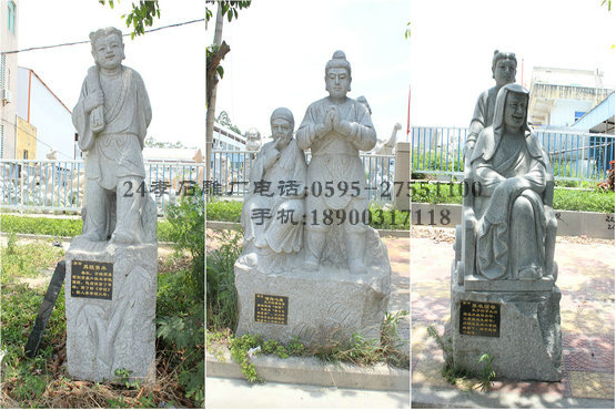 《二十四孝》的編者是元代福建延平府尤溪縣的郭居敬。他曾選輯虞舜以下二十四位孝子的感人故事,為每個(gè)故事配上一首詩(shī),用來(lái)做兒童的啟蒙讀物,《二十四孝》的名稱便是由此而來(lái)。《二十四孝》故事編定成書之后,古人把孝道列為社會(huì)教化的一項(xiàng)重要內(nèi)容,鼓勵(lì)人們“老吾老以及人之老,幼吾幼以及人之幼”,已經(jīng)在我國(guó)流傳數(shù)百年,幾乎達(dá)到了家喻戶曉的程度,對(duì)國(guó)人的倫理道德產(chǎn)生了不可低估的影響。九龍星園林古建加工的二十四孝石雕像栩栩如生,將中國(guó)古代的孝賢及其事跡呈現(xiàn)出來(lái),就是為了讓孝道文化這一傳統(tǒng)文化在新時(shí)代得以發(fā)揚(yáng)光大,進(jìn)一步弘揚(yáng)和傳承中華民族尊老、敬老、愛(ài)