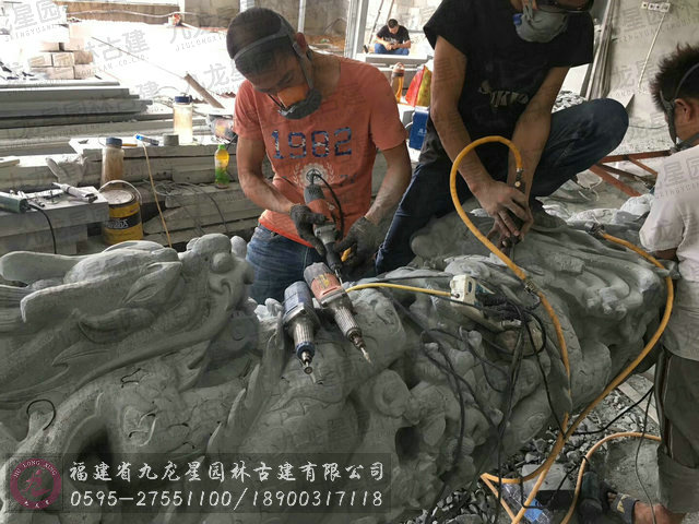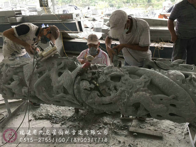 大量石雕青石龍柱現場加工中