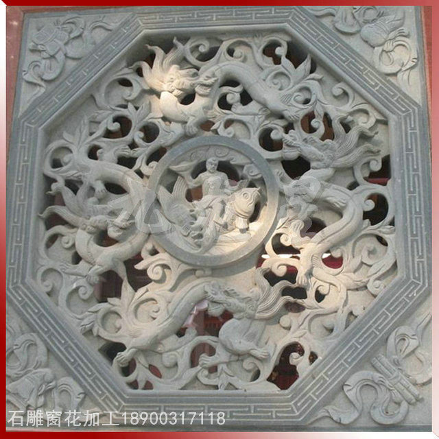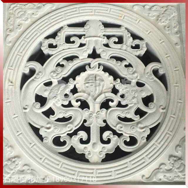 石窗,又稱石花窗,石漏窗。一個“花”字,足可以讓人對它的藝術性浮想聯翩,又足以讓人對它通透采光的實用性窺見一斑。石窗以長方形和方形最多,還有圓形、拱形等。長方形的石窗一般以直式為多,橫式次之。石雕花窗一直以來廣泛用在園林古建、廟宇建筑中,屬于傳統建筑構件類。