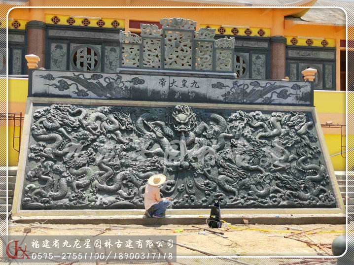 九龍星園林古建寺廟石雕九龍壁安裝
