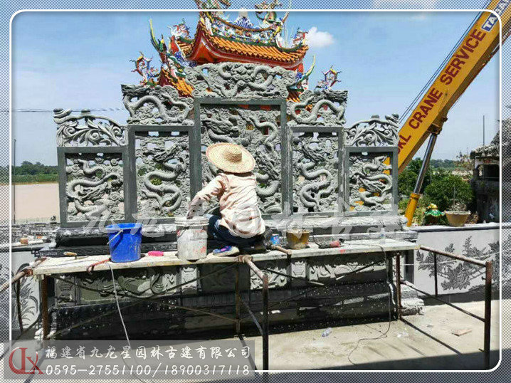 九龍星園林古建青石石雕屏風雙面雕龍安裝