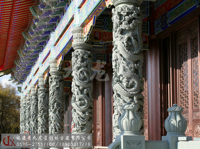 九龍星園林古建加工的寺廟石雕龍柱有單龍柱、雙龍柱、滾龍柱、盤(pán)龍柱、蟠龍柱、華表柱、龍鳳柱、八仙龍柱、青石龍柱等多種造型雕刻。我們通過(guò)專業(yè)且標(biāo)準(zhǔn)化的采購(gòu)渠道,甄選優(yōu)質(zhì)的礦料,加工的寺廟石雕龍柱,大批量應(yīng)用于寺廟建筑裝飾美化,贏得客戶好評(píng)。