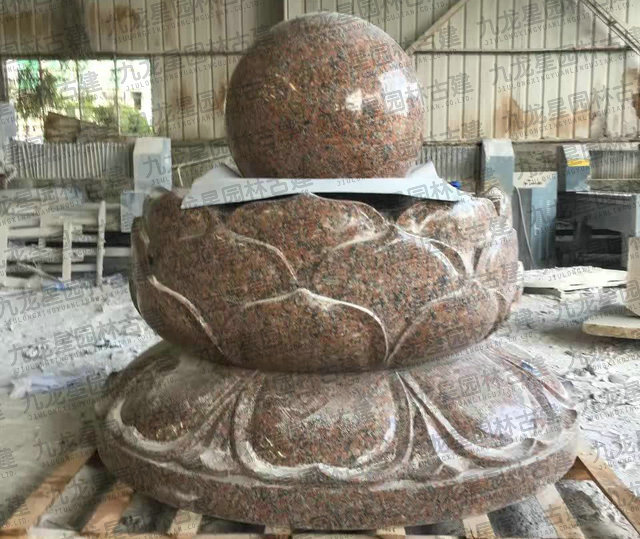 紅色石材風水球寓意紅紅火火,楓葉紅石雕風水球流水噴泉適宜商場會所,酒店賓館,公司企業風水招財石雕裝飾擺設。