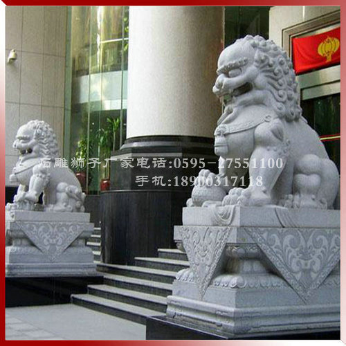 獅子原產(chǎn)地在非洲、印度、南美等地。一千九百年前的漢武帝時代,張騫出使西域,一條絲綢之路,打通了中國與西域各國的交往,獅子進入中國。從此,這遠道而來的獅子開始走入中國人的民俗生活,受以重任,國人視其為吉祥之物,并希望用獅子威猛的形象驅(qū)魔趕邪,造成獅形以鎮(zhèn)壓或以示威武。故在中國眾多的園林名勝中,各種造型的石獅子隨處可見。在古代的官衙廟堂、豪門巨宅大門前,都擺放一對石雕獅子用以鎮(zhèn)宅護衛(wèi)。直到現(xiàn)代,這種安放石獅子的習(xí)俗更加濃厚,許多建筑物大門前就有雙獅守衛(wèi)。