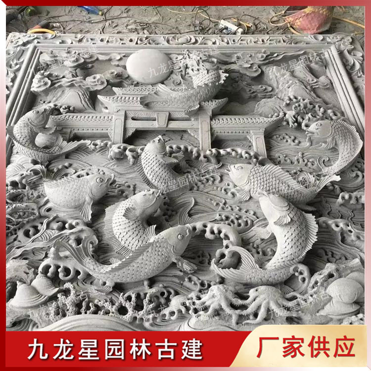 鯉魚躍龍門浮雕石雕壁畫 雕刻祠堂浮雕墻圖片 九龍星