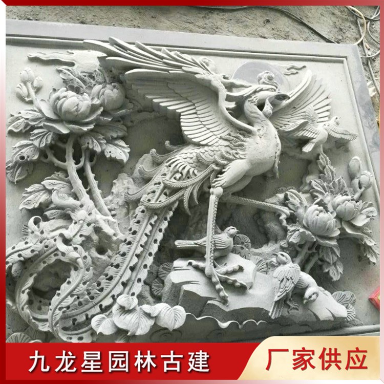 石雕鳳凰浮雕 鳳凰浮雕青石壁畫 吉祥寓意圖案雕刻