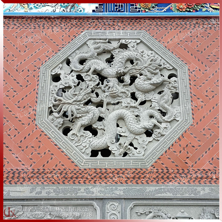 透雕窗欞 中式石花窗 石雕鏤空浮雕壁畫